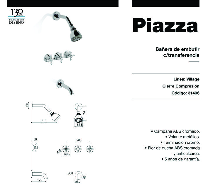 GRIFERIA DUCHA DE EMBUTIR CROMO CON TRANSFERENCIA VILLAGE 31406, PIAZZA.